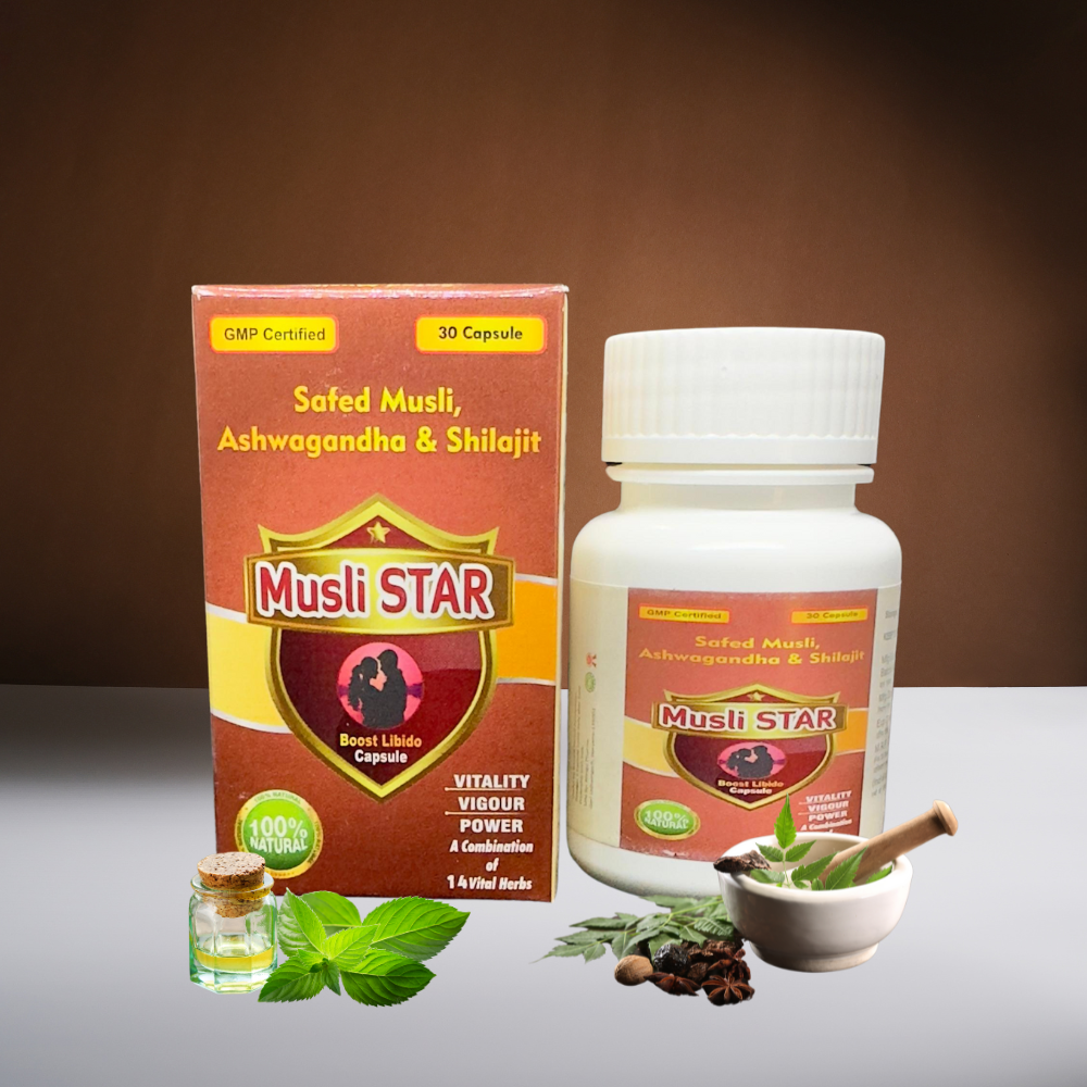 Musli Star a ayurvedic product helps to boost libido & vigour in men. It is very effective in boosting vitality & energy in men.